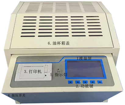 6. 油杯箱盖 打开后放入或取出油杯,关闭后方可进行测试;