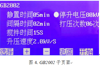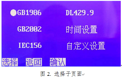 4. 在图2页面下,按选择键移动光标√至GB2002处,按确认键即可进入国标2002设置子页面(图4)。