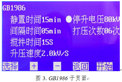 3. 在图2页面下,按选择键移动光标√至GB1986处,按确认键即可进入国标1986设置子页面(图3)。