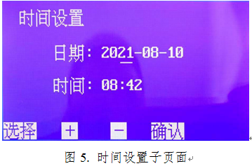 5. 在图2页面下,按选择键移动光标√至时间设置处,按确认键即可进入时间设置子页面(图5)。